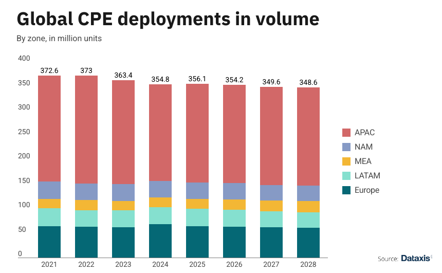 The Operator CPE & STB Forecasts module allows users to quickly capture key market trends & sizes, assess competitive positioning, and anticipate the demand for CPE and STB in volume and value for more than 200 key telecom operators globally.