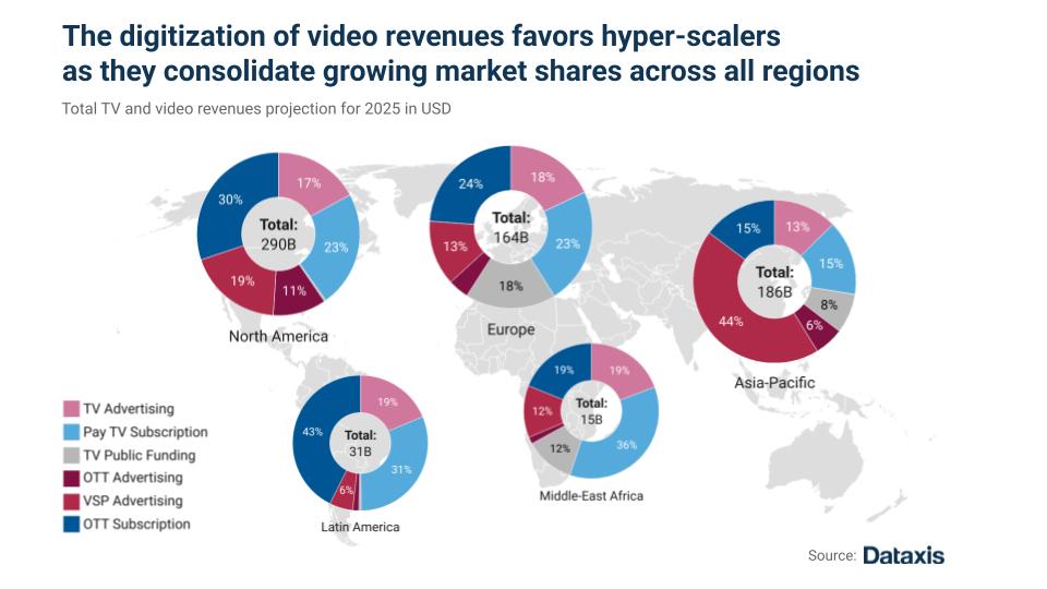 Terrestrial broadcast network infrastructure operators in Europe have garnered revenues reaching approximately €2.2 billion for TV and radio transmission in 2020, a stable amount compared to previous years. The result excludes revenues from diversifications in OTT, telecommunications and IoT. Following Dataxis’ latest research, revenues are expected to remain essentially flat up to 2026. Terrestrial radio infrastructure The FM and DAB transmission services paid by radio broadcasters to network infrastructure service providers amounted to €690 million in 2020, or 6% of the €11 billion revenues generated in total by the European radio industry in 2019, the last regular year for the sector. In 2020, the European radio industry revenues decreased by 8% to €10.2 billion due to the impact of the COVID-19 pandemic on radio advertising markets. This percentage varies depending on the country, and ranges from 11% in France to 8% in the UK for instance. Terrestrial TV infrastructure Digital terrestrial television (DTT) transmission revenues exceeded €1.5 billion in 2020. In Europe, DTT access is widespread in only four countries, which consequently represent two-third of the transmission market: the UK, France, Spain and Italy. Perspective for DTT At the end of 2020, the share of households relying solely on digital terrestrial TV for their main TV set reached 59.4% in Spain, 58.5% in Italy, 32.3% in the UK, and only 21.5% in France. Besides, in this latter country the figure includes 1.4% of households receiving a pay DTT service via Canal+ offer, that is, less than 400.000 subscribers at the end of 2020. The share of DTT-only FTA households is therefore closer to 20% of TV households in France. The French TV broadcasters, essentially France Televisions, TF1, M6 and Canal+, spend around €125 million per year to terrestrial networks TDF and Towercast to reach a decreasing number of households, mostly located in rural areas and often retired. This cost currently represents €1.9 per month and per DTT-only FTA household in the country, while in the UK it reaches €2.4, in Italy €2.85 and in Spain €1.6. In these three last countries the size of the DTT offer is substantially larger than in France, as numerous local and regional TV channels are accessible for free on top of national broadcasters. Dataxis just released a new module dedicated to infrastructures and covering terrestrial broadcast networks infrastructure revenues, independent tower companies revenues and satellite infrastructure (fixed and mobile satellite revenues, internet satellite subscribers and satellite platforms capacities).